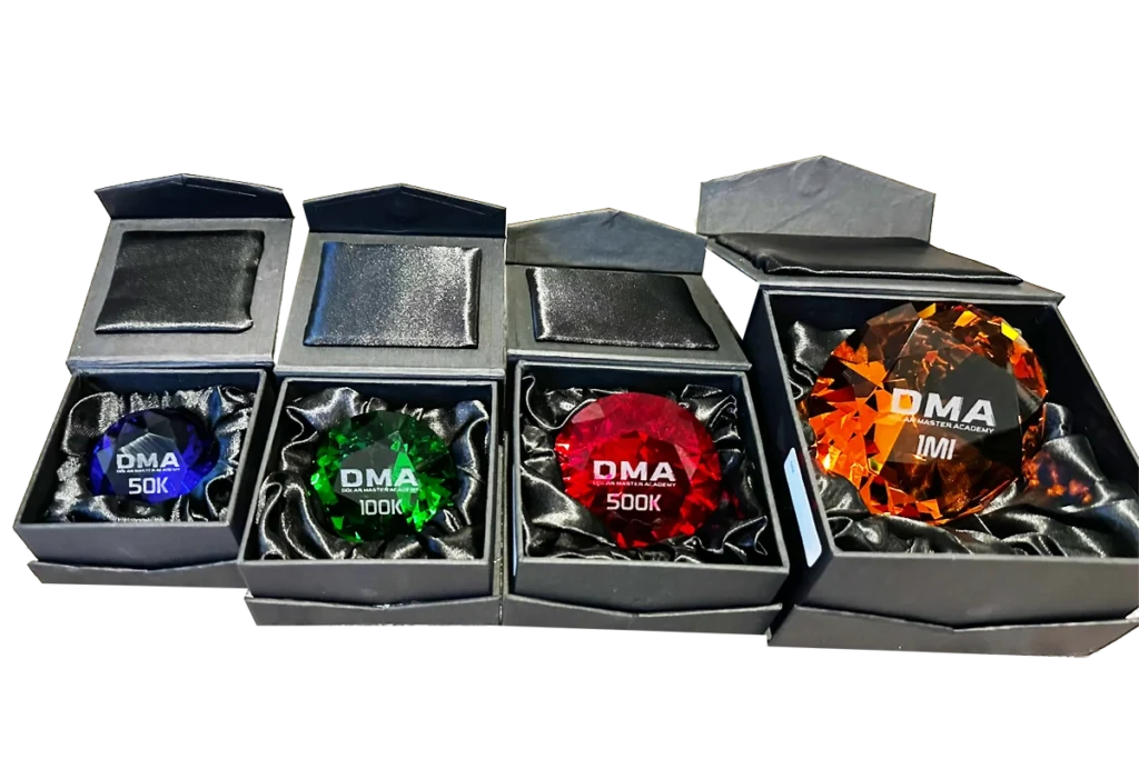 Ao atingir faixas de faturamento no primeiro ano de sua jornada, o seu esforço será reconhecido, você receberá nossas premiações que representam a sua jornada no DMA
